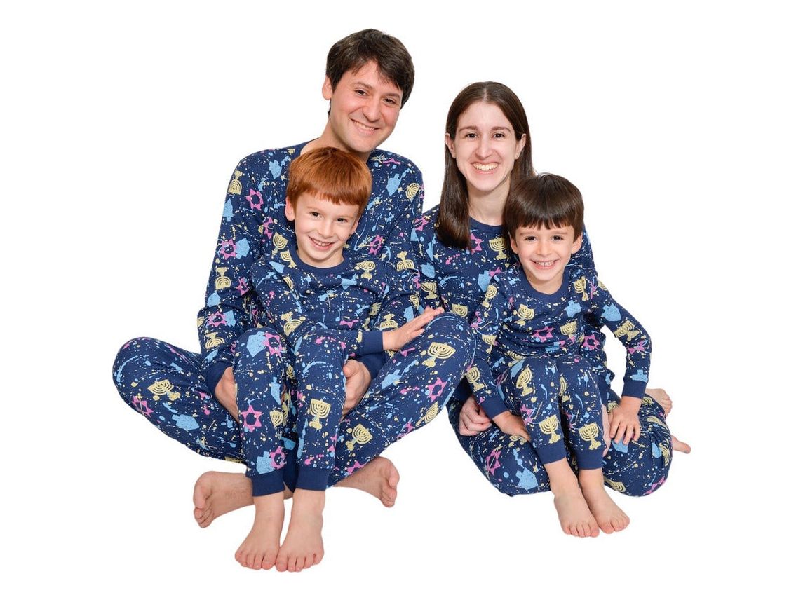 • Pajamas feature an all-over Hanukkah splatter paint print