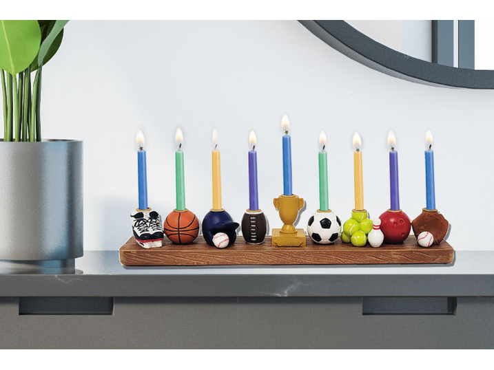 Are you a sports fan? Bring your love of athletics to Chanukah with this detailed resin Menorah that features a different game for every night of Chanukah.