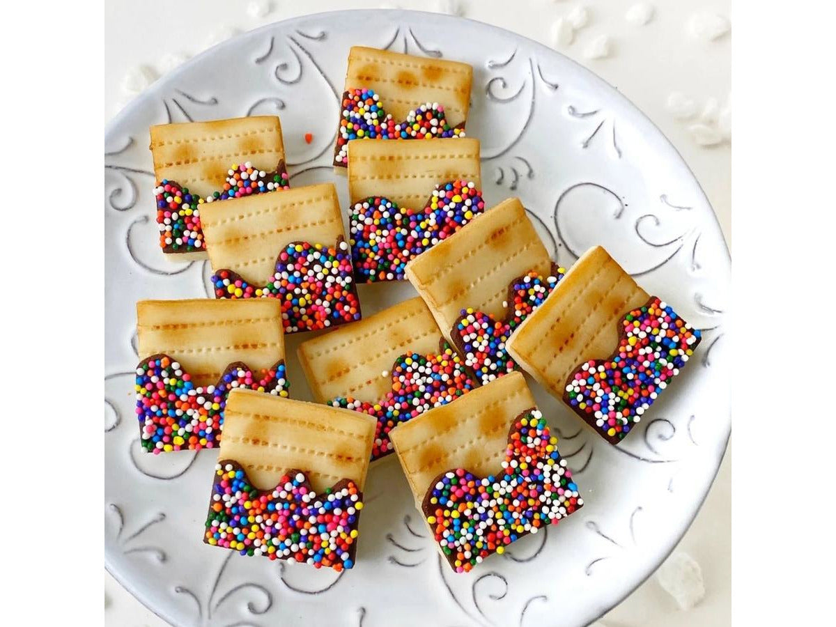 Marzipan Rainbow Sprinkle Matzah Tiles