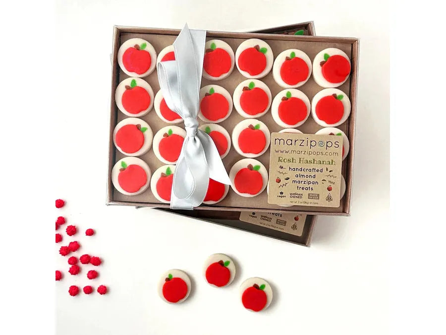 Delicate and flavorful, a box of our mini red apple candy bites is a delicious way to celebrate the sweet new year. Hand cut with painted stems and leaves, our red apples say Shana Tova and Happy New Year to everyone. Perfect for hostess gifts, desserts and holiday treats. Shana Tova!