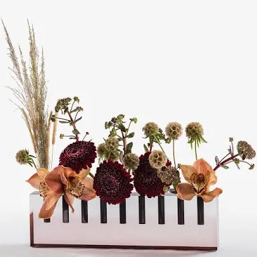 When ready for use as a flower vase, simply remove the metal cups and store them in the beautiful storage box.  Fill each hole ¾ full of water and arrange with flowers of your choice. We love using it as a centerpiece for Shabbat dinner.